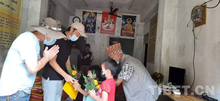 Aama Ko Maya孤兒院小朋友們向中國(guó)西藏自治區(qū)農(nóng)牧科學(xué)院援尼泊爾北部山區(qū)農(nóng)業(yè)項(xiàng)目組專家獻(xiàn)花以表示感謝