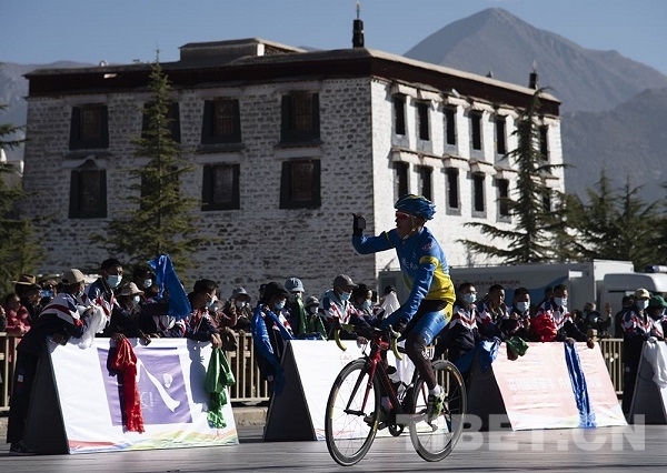此刻的他們,已卸下兩個比賽日的緊張情緒,輕松地從西藏會展中心廣場出發(fā),騎行十公里抵達(dá)終點(diǎn)。這段榮譽(yù)騎行,他們接受著沿途觀眾的矚目、哈達(dá)和歡呼。