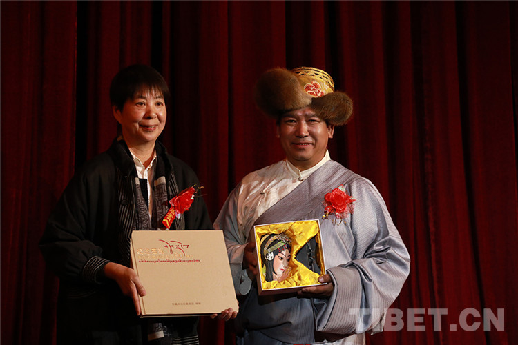 圖為紀(jì)念西藏自治區(qū)藏劇團(tuán)成立60周年會議現(xiàn)場,國家京劇院與西藏自治區(qū)藏劇團(tuán)互贈紀(jì)念品 攝影:西藏自治區(qū)藏劇團(tuán)楊子