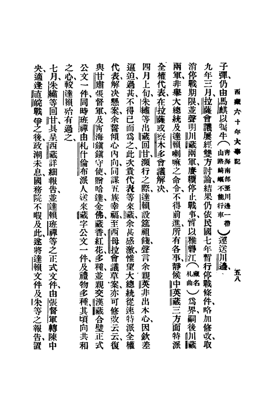 那么,何以后來出現(xiàn)朱繡為代表團負(fù)責(zé)人一說呢?原來朱繡進藏前,就“于藏事先后得失情形,了如親歷”“每與談及藏事,批隙導(dǎo)竅,理解豁然”。此次,他赴藏耳聞目睹感受更深,痛感“訌內(nèi)虎紛爭,烈烈邊風(fēng)急”。 他在代表團的報告未獲重視后,慮及有關(guān)西藏近代歷史尚無一可資借鑒之書,而“國人與政府又太不明了邊事”,決定將西藏近六十年的大事輯為一冊,以供“留心邊事者一助”。他利用閑暇時間,查找有關(guān)資料,如條約、公文等,并四處奔走,調(diào)查川藏前后戰(zhàn)爭情形,最終于1925年將書印行問世,為后人了解和研究西藏這段特殊的歷史時期留下了不可多得的資料。