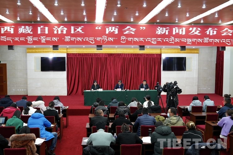 圖為西藏自治區(qū)“兩會(huì)”新聞發(fā)布會(huì)現(xiàn)場(chǎng) 攝影:趙耀