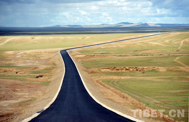 這是通往藏北雙湖縣剛鋪筑完工的柏油新路(唐召明2017年7月27日攝)