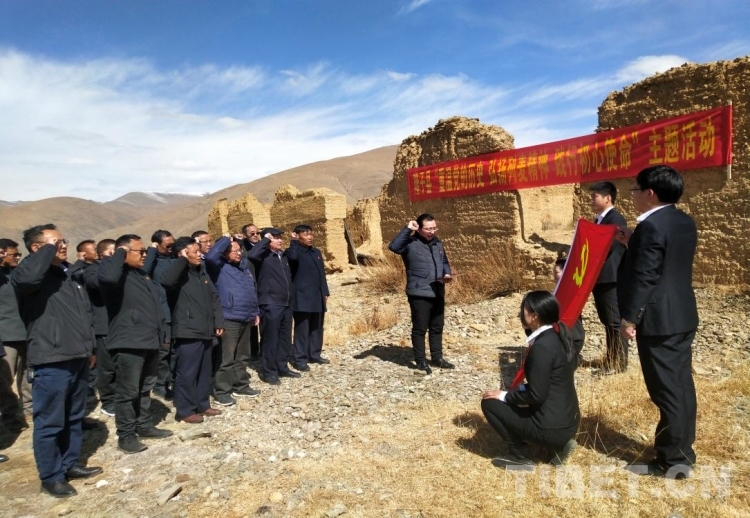 圖為隆子縣組織黨員干部在列麥鄉(xiāng)“革命壩”參觀學習并重溫入黨誓詞 圖片由隆子縣提供