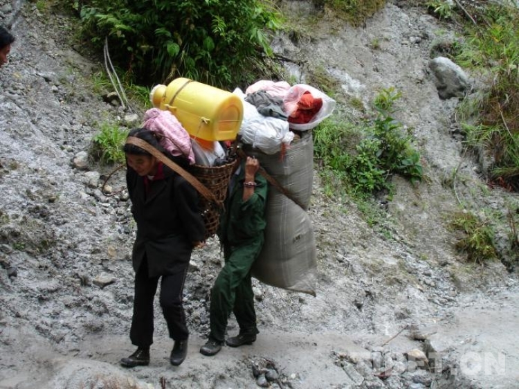 由于境內(nèi)交通閉塞,交換是墨脫門(mén)巴族、珞巴族群眾獲取生活必需品的重要途徑。而對(duì)外進(jìn)行物資交換,往返途中還要背負(fù)重物,翻越高山陡崖、跋涉湍急溪流,爬天梯、滑溜索、過(guò)獨(dú)木橋,一次往返需10至20天左右,勞動(dòng)強(qiáng)度和艱險(xiǎn)程度之大令人瞠目結(jié)舌,沿途殘留的人畜白骨充分印證了此路之艱險(xiǎn)。