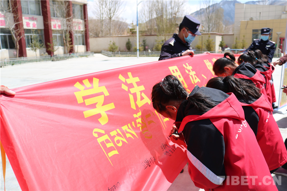 圖為南尼邊境派出所民警組織南尼中心小學(xué)學(xué)生進行簽名。旦增白瑪 攝