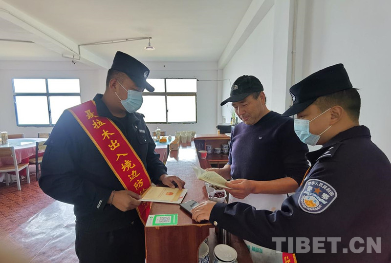 “當(dāng)你們遇到有危害公共安全的行為時,一定要第一時間舉報。”聶拉木出入境邊防檢查站民警達(dá)瓦次仁一邊給工人發(fā)宣傳單一邊說道。
