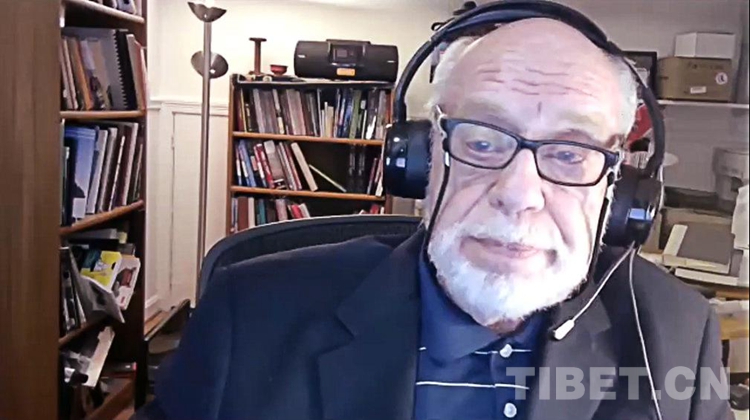 圖為梅·戈?duì)査固雇ㄟ^(guò)線上參加第五屆西藏智庫(kù)國(guó)際論壇