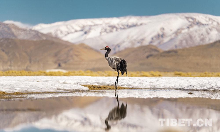 圖為得益于西藏生態(tài)環(huán)境越來(lái)越好,黑頸鶴無(wú)憂無(wú)慮地徜徉在羌塘草原上,和諧而優(yōu)雅 攝影:趙耀