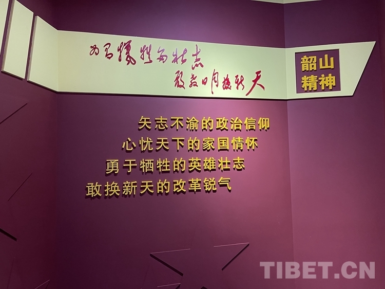 1959年6月25日,毛澤東回到韶山,在松山一號樓寫下《七律·到韶山》,將韶山精神概括為“為有犧牲多壯志 敢教日月?lián)Q新天”。圖為陳列館內(nèi)對韶山精神的標語總結(jié)。