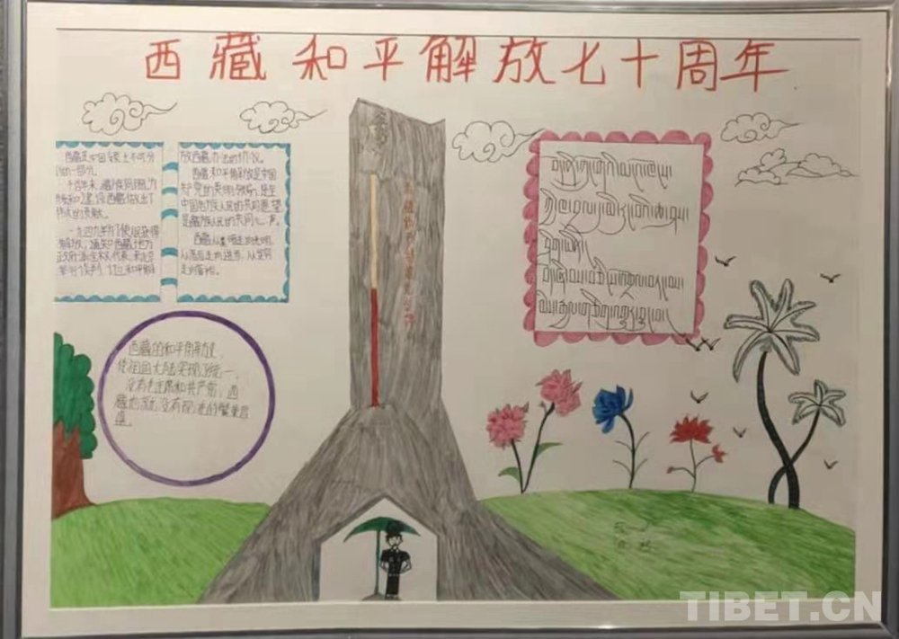 此次展覽是在慶祝中國共產(chǎn)黨成立100周年、西藏和平解放70周年之際,舉辦的一次展示西藏少年精神面貌的少兒手抄報專題展。展覽從今年三月份開始策劃,共展出240幅堆龍德慶區(qū)小學(xué)生手抄報。