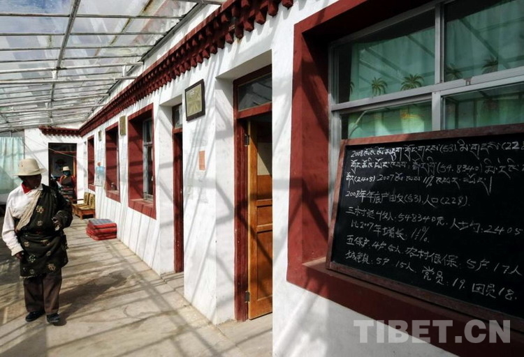 走進(jìn)村委會(huì)的玻璃式采暖房,首先映入眼簾的是申扎縣委頒發(fā)的“安全文明村”金色牌匾,以及藏漢文兩種文字的學(xué)習(xí)墻報(bào)。