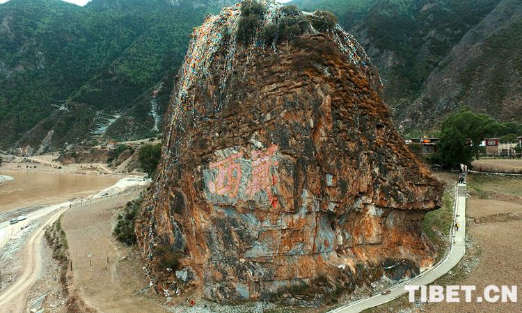 圖為江達(dá)縣崗?fù)墟?zhèn)崗?fù)写?,十八軍?zhàn)士刻下的“西藏”兩個大字 攝影:陳衛(wèi)國