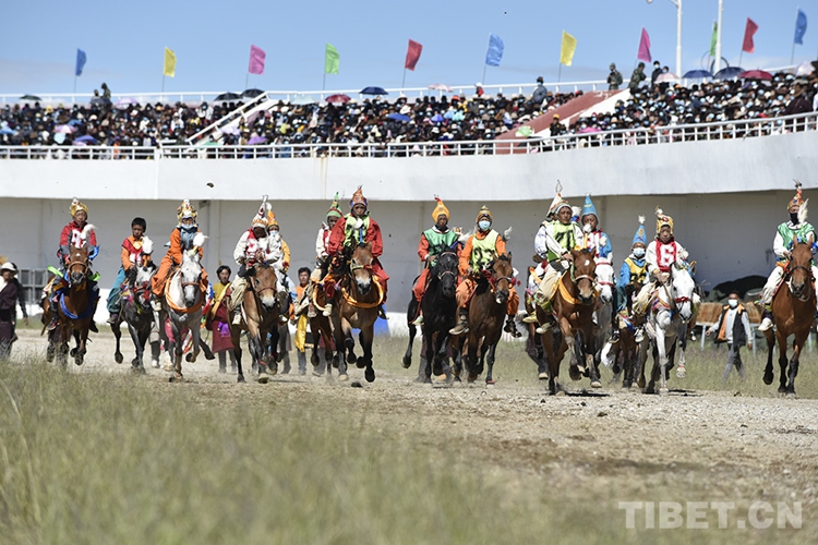 圖為那曲市2020羌塘恰青格薩爾賽馬藝術節(jié)場內速度賽馬比賽現(xiàn)場,少年們策馬而行(資料圖)