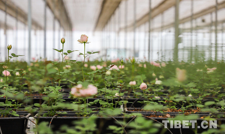 圖為扎囊現(xiàn)代農(nóng)牧產(chǎn)業(yè)園內(nèi)種植的7萬(wàn)株玫瑰花盛開(kāi) 攝影:趙耀