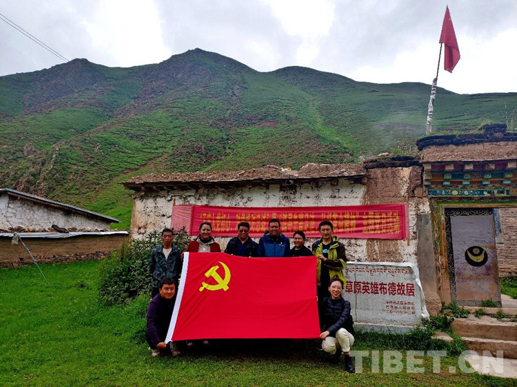 我們?cè)诓嫉鹿示咏邮芰艘惶蒙鷦?dòng)的黨史教育。當(dāng)結(jié)束參觀,走出故居門時(shí),我們一下子更加領(lǐng)悟到眼前的村莊、山川、河谷為什么如此寧?kù)o、美好而又詳和的真正原因了。在大家提議下,便展開黨旗,在“草原英雄布德故居”前合影,這是一次最難忘的黨日活動(dòng)。當(dāng)上車離開時(shí),我們與頓珠扎西同志和其家人依依不舍。英雄布德是我們?nèi)松飞系囊蛔S碑和榜樣,將照耀我們的行程,增強(qiáng)我們的斗志,不忘初心,牢記使命,繼續(xù)前行。(中國(guó)西藏網(wǎng) 文/馮智 本文系中國(guó)藏學(xué)研究中心“那曲市民族交往交流交融史實(shí)調(diào)研組”供稿)