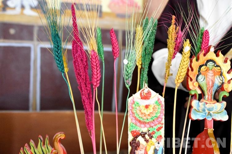 圖為青稞麥穗染色做成的“羅薩梅朵” 攝影:拉姆
