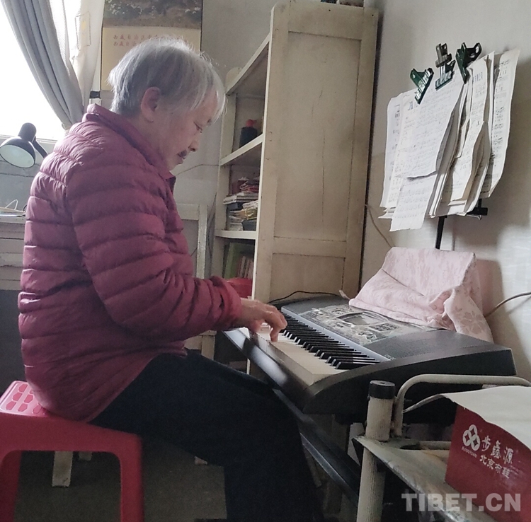 鄧親和,四川省樂山市犍為縣人,出生于1931年,十八軍52師文工隊戰(zhàn)士。1950年,鄧親和19歲,正值高三,成績優(yōu)異的她不顧家人的勸阻,毅然放棄了繼續(xù)讀書的機會,踏上了解放西藏的征途,從此在雪域高原上留下了人生最寶貴的青春足跡。初見鄧老師,她親切和藹的樣子,給我留下深刻的印象。老人雖然退休多年,但是她的生活仍然格外豐富。據(jù)老人講,她的作息時間比較規(guī)律,堅持做八段錦鍛煉身體,自己做家務(wù),空閑時間還會看書看報、提筆練字,或是彈彈電子琴,唱唱歌等等,生活豐富多彩。此刻,我從她的身上看到了年輕時鄧親和的神態(tài)與風(fēng)采?;厥啄嵌螎槑V歲月,翻雪山、過草地、穿峽谷、涉冰河……面臨高山缺氧的生命危險,趟越急流冰河的刺骨鉆心,爬冰臥雪、忍饑耐寒,遇艱險不畏其險,歷困難不以為難,樁樁件件好似一首首雋永的絢麗詩篇,常在她記憶里回蕩,令人難忘。