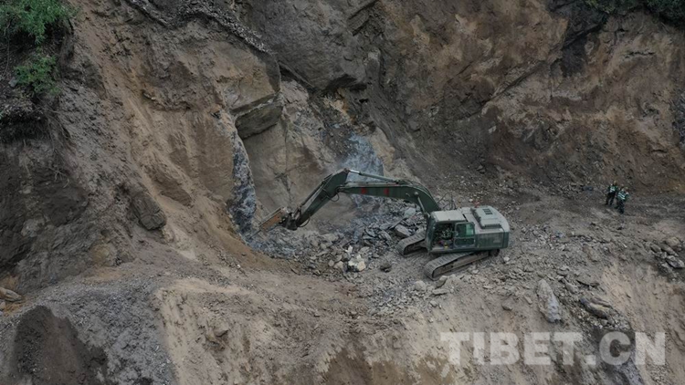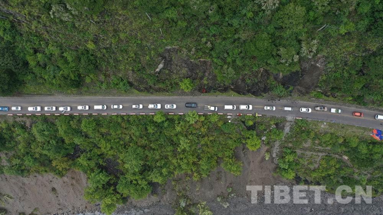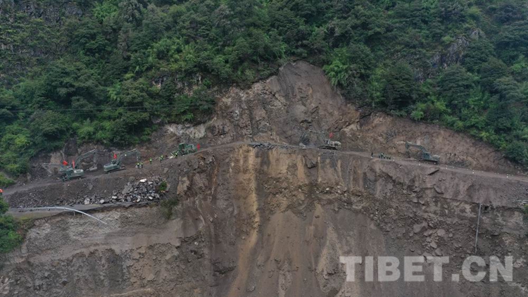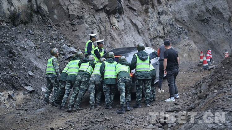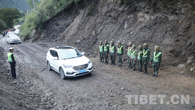中國(guó)西藏網(wǎng)訊 8月28日18時(shí)許,經(jīng)過(guò)武警第二機(jī)動(dòng)總隊(duì)某支隊(duì)官兵連續(xù)5天的艱苦鏖戰(zhàn),搶修出一條長(zhǎng)215米的便道,使因路基垮塌造成國(guó)道318線西藏自治區(qū)林芝波密境內(nèi)段斷通的道路成功恢復(fù)通行,可供小型車輛單向通行。在武警官兵的指揮下,滯留兩端的車輛有序帶隊(duì)安全通過(guò)。