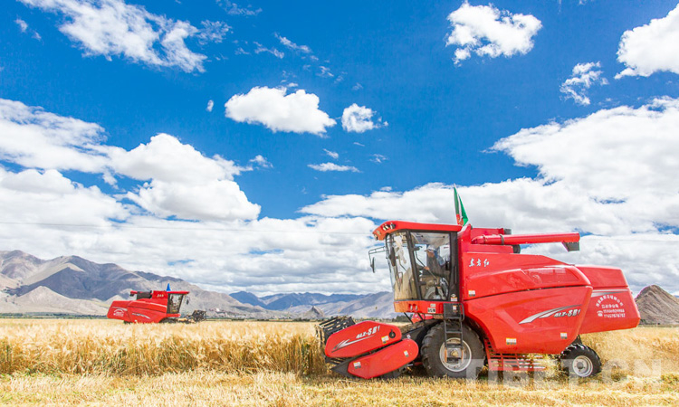 圖為江孜縣青稞機械化收割現(xiàn)場 攝影:趙耀