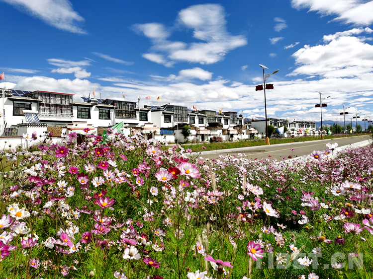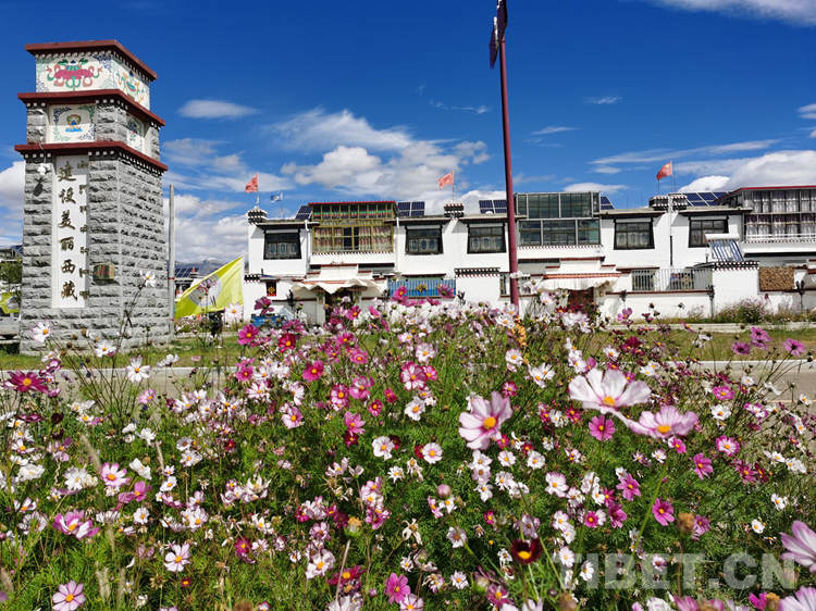 中國西藏網(wǎng)訊 西藏自治區(qū)日喀則市桑珠孜區(qū)江當(dāng)鄉(xiāng)郭加新村,坐落在通往日喀則和平機(jī)場的拉日高速旁,一個鮮花盛開的搬遷村莊,錯落有致的藏式二層小樓,富有民族特色的庭院廣場,寬敞、整潔、一片祥和的安寧景象。