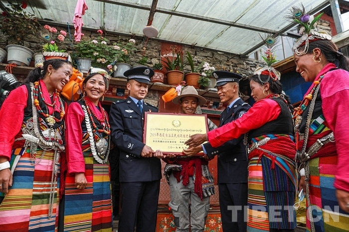 民族團結(jié)之花,盛開于共同奮斗的征程上。2019年9月,該所榮獲“2019年西藏自治區(qū)民族團結(jié)進步模范集體”,2021年1月19日榮獲“第八批全國民族團結(jié)進步示范區(qū)示范單位”,這是對陳塘邊境派出所工作的最大肯定?!斑@個榮譽是陳塘鎮(zhèn)各族人民和我們共同奮斗出來的?!泵窬n金彪說道。以前的陳塘鎮(zhèn)由于與外界交流少,大部分群眾幾乎都是文盲、法盲,易發(fā)生打架斗毆事件,派出所的民警總是第一時間趕到現(xiàn)場,穩(wěn)定形勢,化解矛盾。為解決根本矛盾,派出所在轄區(qū)開展?jié)h語教學,將漢語作為通用語言,慢慢克服語言交流障礙,從解決文盲問題再到解決法盲問題。解決語言不通的根本問題后,派出所民警每周都會在轄區(qū)、學校進行普法宣講,潛移默化地增強群眾的法律意識,隨著時間的推移,如今的陳塘鎮(zhèn)各族人民基本能聽懂漢語,也懂得了一些基本法律,從以前的靠國家政府補貼,到如今的自力更生,這一切都離不開陳塘邊境派出所民警和陳塘鎮(zhèn)各族人民的共同奮斗。