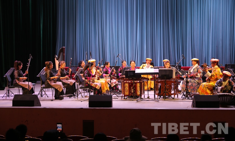 演出在民樂合奏《花好月圓》中正式拉開帷幕,由扎念琴、達(dá)瑪鼓、畢旺等藏族傳統(tǒng)樂器演奏的、獨(dú)具阿里“宣舞”特色的器樂合作《古格回音》、西藏傳統(tǒng)歌舞堆諧《百美百東》、弦子《藏東神韻》、管弦樂《我的祖國(guó)》、女聲獨(dú)唱《唱支山歌給黨聽》等共13個(gè)精彩紛呈的節(jié)目接連上演,引得現(xiàn)場(chǎng)掌聲陣陣。