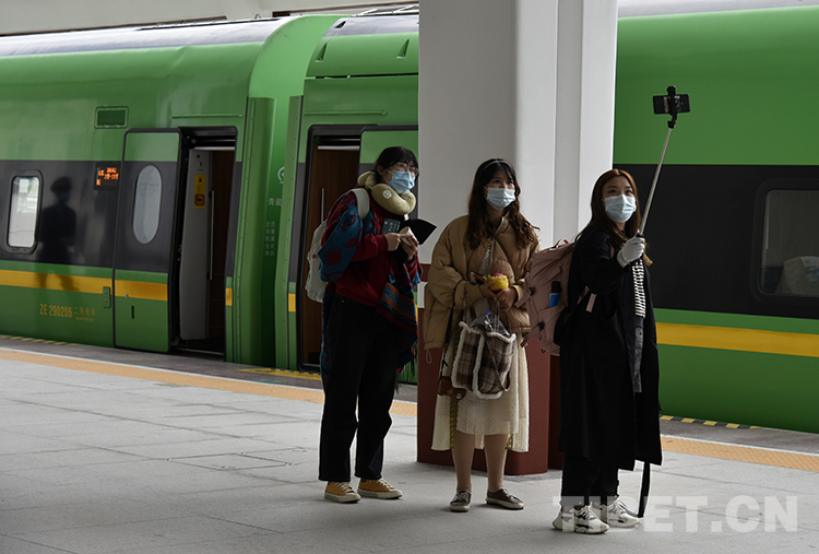 圖為9月25日D8981次動車抵達林芝,乘客拍照留念 攝影:王媛媛