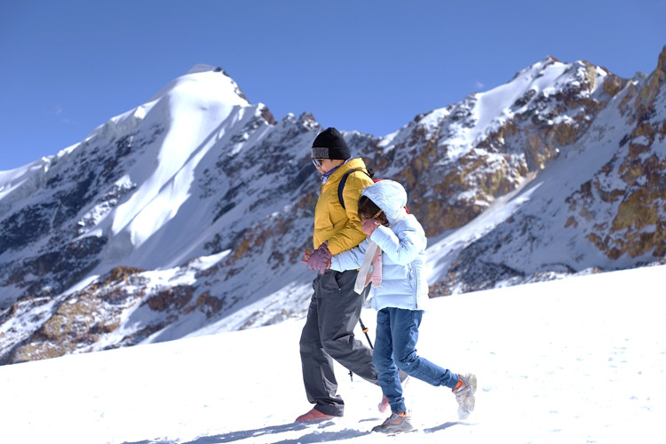 楊女士進(jìn)藏已有半月,在專業(yè)人士的協(xié)助下她第一次近距離接觸了冰雪世界,并攀登到了海拔5600米的地方?!敖裉煳覜]有高原反應(yīng),帶的氧氣也沒用?!痹谘┥缴蠗钆康呐d奮之情溢于言表。