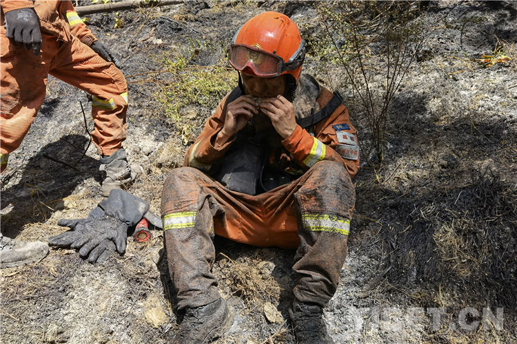 連日來,在火場上,席地而睡的消防員和寧吃干糧不拿群眾“一針一線”的消防員隨處可見。(中國西藏網 通訊員/張強 夏明勇)