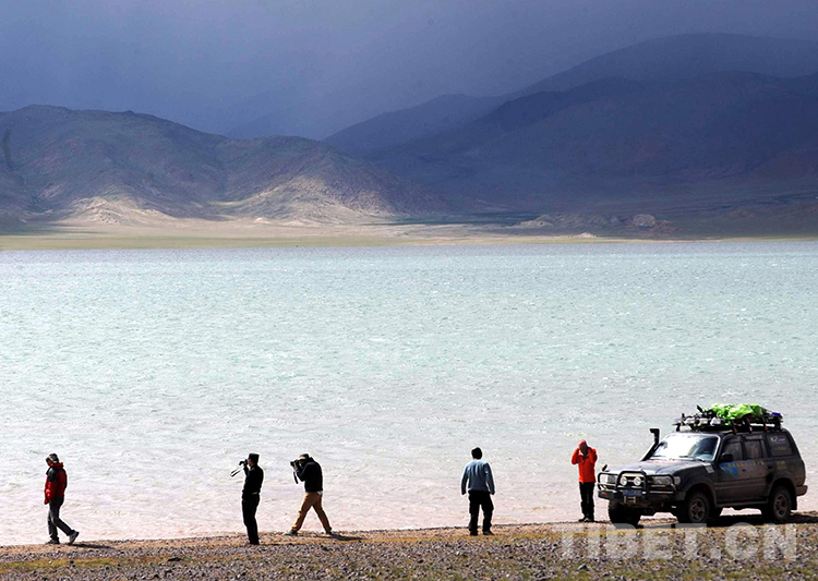 這是自駕游的游人在安多縣境內的一湖泊前拍照(唐召明2009年8月3日攝)