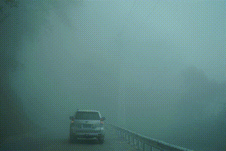 再次回眸,此時白雪墨林好似一幅水墨畫,盤山公路幾乎隱沒于漫天云霧之中。