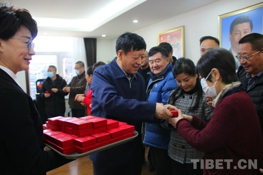 學(xué)習(xí)輔導(dǎo)會后,協(xié)會為各分部頒發(fā)、贈送領(lǐng)袖畫像和西藏和平解放70周年紀(jì)念章。(中國西藏網(wǎng) 記者/王茜)