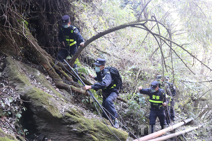 “大家注意安全,我走前面,你們跟著我的腳步走,相互之間照應(yīng)一下,發(fā)現(xiàn)情況及時(shí)匯報(bào)?!睂?duì)于友誼橋執(zhí)勤點(diǎn)負(fù)責(zé)人的尼瑪云旦來(lái)講,帶領(lǐng)戰(zhàn)友們巡山踏查是一天中最重要的工作之一。走在隊(duì)伍前面的尼瑪云旦用棍棒將枝繁葉茂的樹枝向兩邊拍打,帶領(lǐng)著大家一步一腳印的向上爬。
