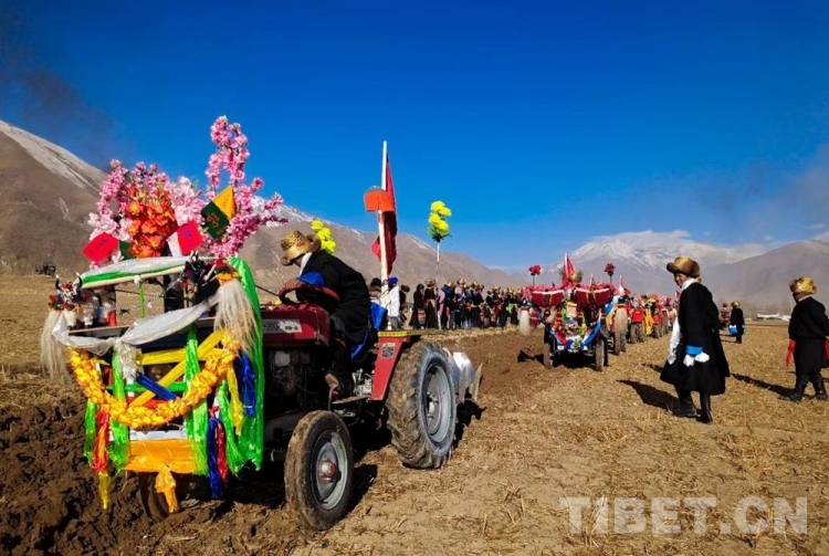 據(jù)悉,儀式當(dāng)日上午,村民們會身著節(jié)日盛裝,歡聚在田間地頭、載歌載舞隆重舉行春耕春播儀式。活動現(xiàn)場,姑娘們舉起手中的切瑪、青稞酒、人參果為犁手們唱歌敬酒,在祝福的歌聲中,開啟春耕“第一犁”。在西藏,過去是牦牛耕地,如今,隨著農(nóng)業(yè)科學(xué)化發(fā)展,現(xiàn)在農(nóng)耕都用現(xiàn)代化的拖拉機“鐵?!备亍R话慵獣r一到,一個個犁手頭頂金黃圓筒帽,身穿氆氌藏裝駕著一輛輛插著五星紅旗,系著潔白哈達的“鐵?!本従忨傔M田間,一片片沃土隨著鐵犁慢慢翻開,婦女們在后面播撒青稞良種……在田埂上形成一道最靚麗的風(fēng)景線,好不壯觀!