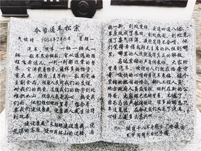 為更好地讓廣大干部群眾和八方游客了解筑路運(yùn)輸?shù)钠D難困苦、順利通車波密時(shí)的動(dòng)人場(chǎng)景,2021年12月,波密縣對(duì)廣場(chǎng)進(jìn)行了提檔升級(jí),從尊重歷史的角度,進(jìn)一步論證規(guī)范了廣場(chǎng)名稱。“波密通車紀(jì)念廣場(chǎng)”八個(gè)鮮紅大字仿佛在講述那段激情燃燒的崢嶸歲月,紅色的碑文篆刻著筑路部隊(duì)驚心動(dòng)魄修筑康藏公路時(shí)的艱辛與磨難,王笑雨同志的日記記錄著汽車駛?cè)氩軙r(shí)干部群眾臉上的激動(dòng)與新奇……教育、激勵(lì)和引導(dǎo)廣大干部群眾堅(jiān)定不移感黨恩、聽黨話、跟黨走。(中國(guó)西藏網(wǎng) 圖文/波密縣組織部紅色工作專班)