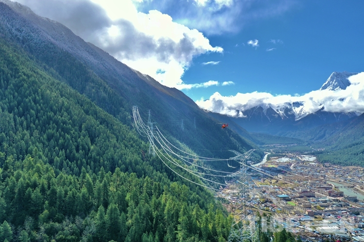國網(wǎng)西藏電力超高壓公司林芝運(yùn)維分部何王洪介紹,直升機(jī)起飛一架次可飛行三個(gè)多小時(shí),完成至少40千米的輸電線路巡檢作業(yè),作業(yè)效率是傳統(tǒng)人工巡檢效率的數(shù)十倍。