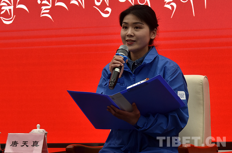 圖為拉薩市消防救援支隊(duì)布達(dá)拉宮消防救援站指導(dǎo)員傅梅天賜現(xiàn)場發(fā)言 攝影:王媛媛