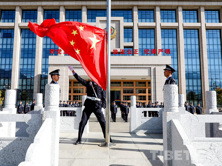 在林芝支隊(duì)機(jī)關(guān)大樓前,鮮艷的五星紅旗在雄壯的國(guó)歌聲中冉冉升起,機(jī)關(guān)全體民警警容嚴(yán)整、精神飽滿,用標(biāo)準(zhǔn)的敬禮向國(guó)旗致敬,向偉大的祖國(guó)和勞動(dòng)人民致敬。