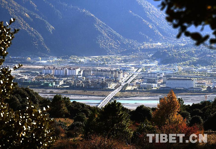 圖為在比日神山生態(tài)景區(qū)俯瞰林芝市巴宜區(qū)