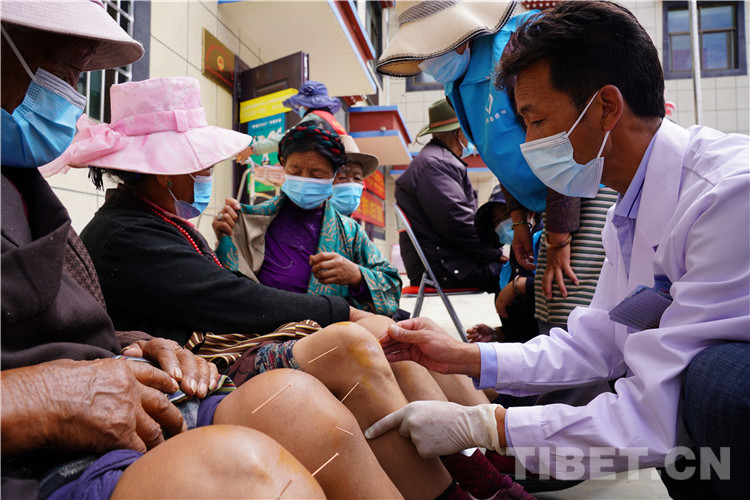 義診中,瓊結(jié)縣衛(wèi)健委(藏醫(yī)醫(yī)院)醫(yī)療健康志愿隊(duì)耐心接待每位前來咨詢的農(nóng)牧民群眾,悉心為農(nóng)牧民群眾診斷病情。