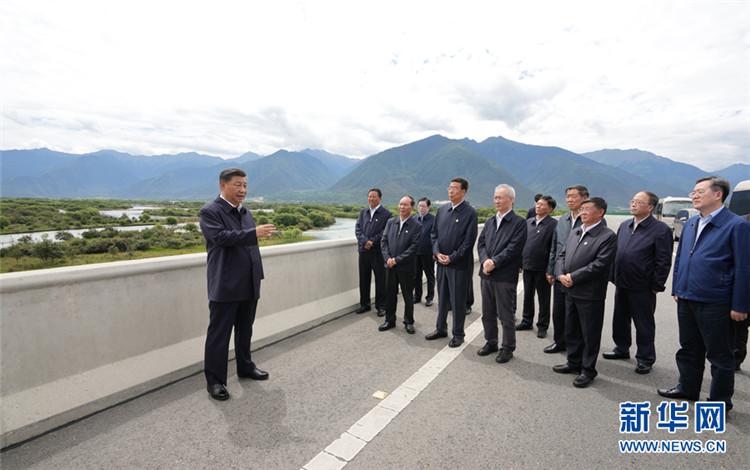 2021年7月21日上午,習(xí)近平總書(shū)記乘車(chē)來(lái)到林芝尼洋河大橋,考察雅尼濕地。遠(yuǎn)眺水波蕩漾、草木蔥蘢的雅尼濕地,聽(tīng)取雅魯藏布江及尼洋河流域生態(tài)環(huán)境保護(hù)和自然保護(hù)區(qū)建設(shè)等情況。習(xí)近平強(qiáng)調(diào),要堅(jiān)持保護(hù)優(yōu)先,堅(jiān)持山水林田湖草沙冰一體化保護(hù)和系統(tǒng)治理,加強(qiáng)重要江河流域生態(tài)環(huán)境保護(hù)和修復(fù),統(tǒng)籌水資源合理開(kāi)發(fā)利用和保護(hù),守護(hù)好這里的生靈草木、萬(wàn)水千山。(圖片來(lái)源:新華網(wǎng) 攝影:新華社記者 李學(xué)仁)
