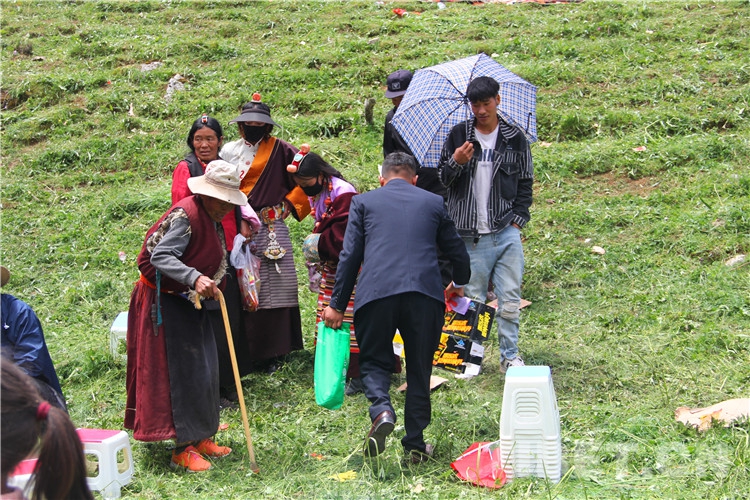 圖為2022年伊日鄉(xiāng)第二屆文化旅游藝術(shù)節(jié)上,在帳篷里休閑的群眾將食物殘?jiān)湃肜?攝影:王茜