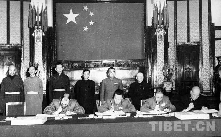 圖為《中央人民政府和西藏地方政府關于和平解放西藏辦法的協議》簽訂現場