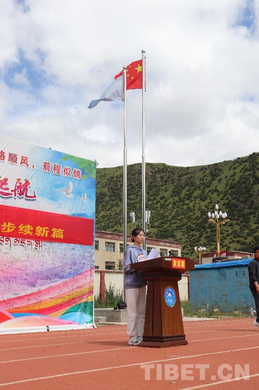 圖為閆關夏子同學在國旗下發(fā)表民族團結主題演講 李彤彤 攝