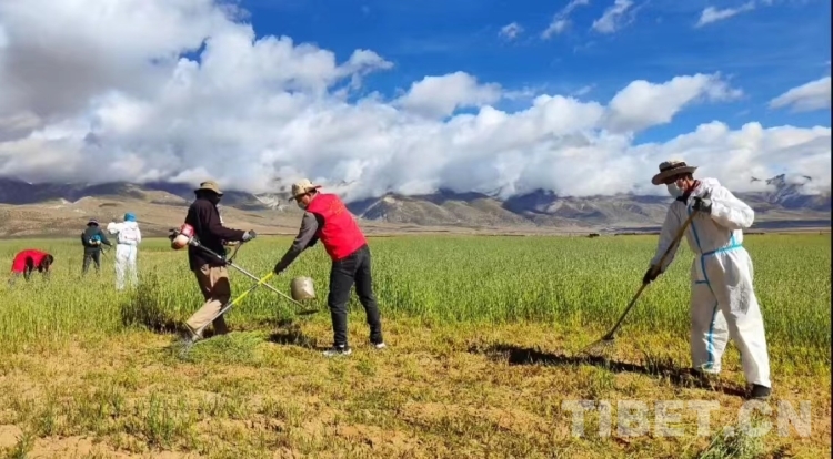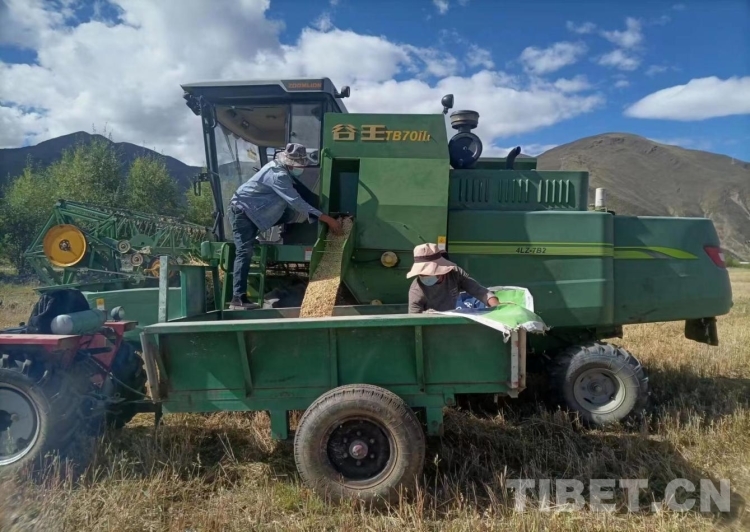 圖為國家牧草產(chǎn)業(yè)技術體系拉薩綜合試驗站曲尼帕基地燕麥種子秋收搶收工作(海拔3760米)