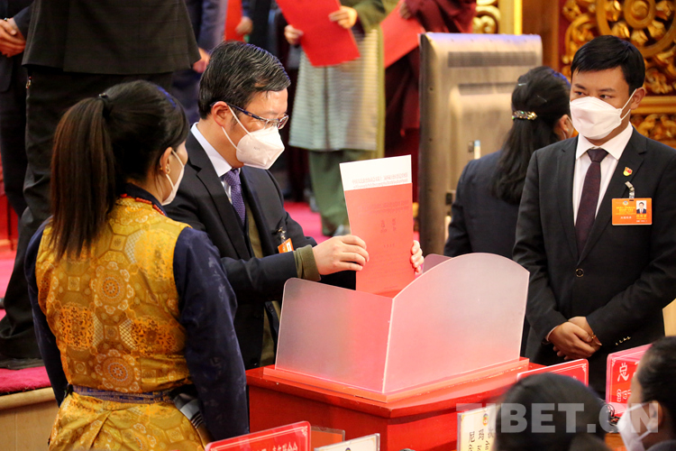 圖為政協(xié)委員投下神圣而又莊嚴的一票 攝影:王佳豪