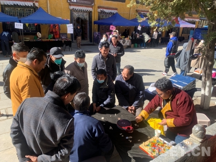 圖為“古院市集|年味拉薩”活動現場當地市民在玩藏式骰子。