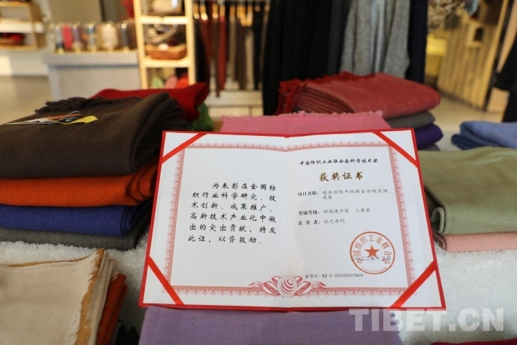 牦牛的生存環(huán)境決定了牦牛絨比普通羊毛更加保暖、柔軟,但也帶來(lái)了紡織上的技術(shù)難題。牦牛絨很細(xì),纖維的卷曲較少并且卷曲形態(tài)不規(guī)則,成條成紗難度大。在不斷的探索中,團(tuán)隊(duì)發(fā)現(xiàn)牦牛絨與蠶絲混紡能改善牦牛絨的可紡性,這解決了一大技術(shù)難題,公司還因此獲得知識(shí)產(chǎn)權(quán)專(zhuān)利及多項(xiàng)科學(xué)技術(shù)獎(jiǎng)項(xiàng)。