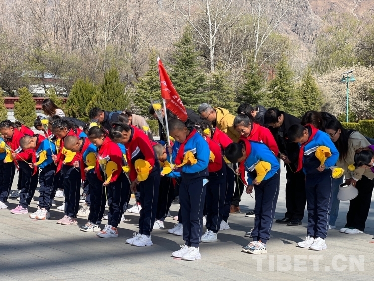 中國(guó)西藏網(wǎng)訊 4月12日上午,由西藏?zé)煵蓠v日喀則市昂仁縣第十一批駐村工作隊(duì)、江蘇商會(huì)黨委、冬日暖陽(yáng)愛心公益組織承辦的“領(lǐng)略非凡世界、放飛多彩夢(mèng)想”公益活動(dòng)工作組帶領(lǐng)來自西藏日喀則市昂仁縣多白鄉(xiāng)的30名小學(xué)生來到位于拉薩市西郊的拉薩烈士陵園緬懷革命先烈。