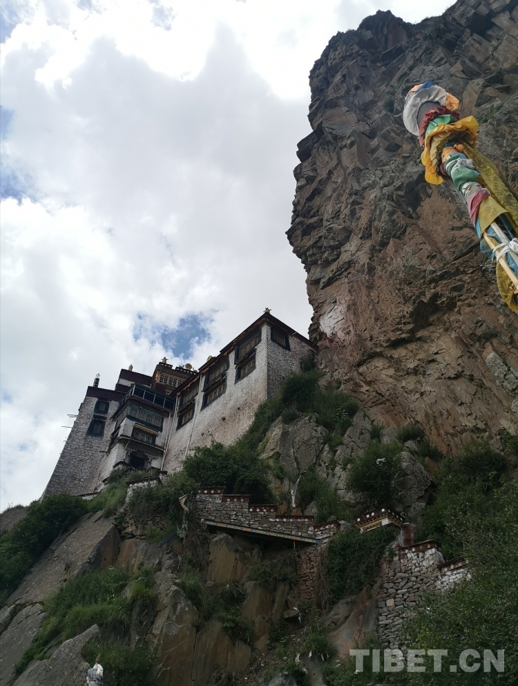 斯林寺,位于拉薩市林周縣旁多鄉(xiāng)旁多村,據說該寺后山氣勢磅礴如威猛雄獅,周圍灌木叢林茂密如海,是清凈修行的好地方,所以該寺(日追)名稱斯(森)林,意為獅子林。這里的噶舉僧人遠離塵囂,在絕壁懸崖上閉關,又由于此寺地處高山云霧密林危崖間,從遠處看去酷似不丹王國馳名世界的標志性建筑——虎穴寺,而被稱為西藏版的“虎穴寺”。